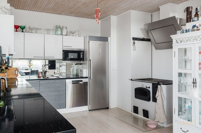 - Jääkaappipakastin, liesituuletin, mikroaaltouuni, astianpesukone, ja liesi