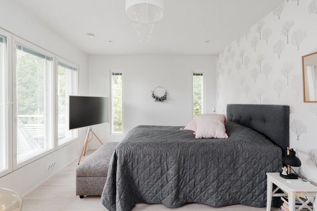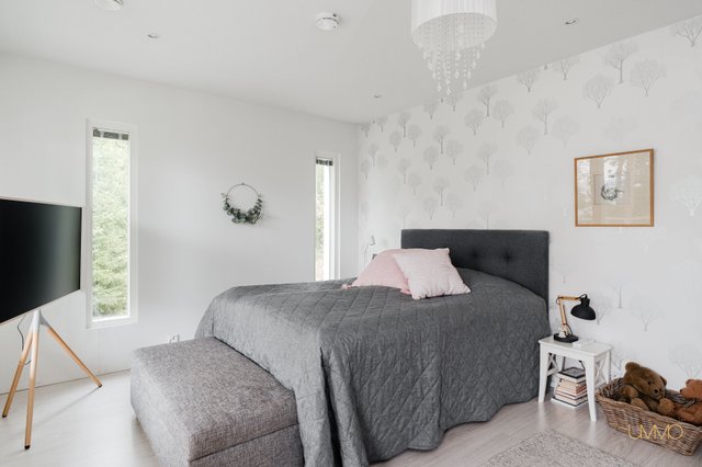 - Yläkerrassa kaksi makuuhuonetta. Alakertaan mahdollista käyttää kodin kolmantena makuuhuoneena.