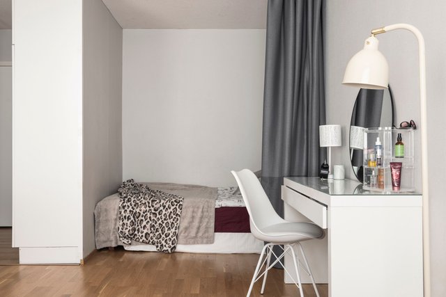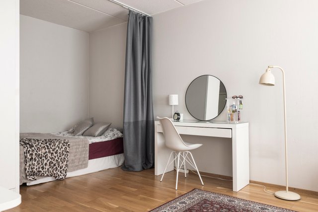 - Makuualkovi. Sängyn saa verhojen taakse piiloon.