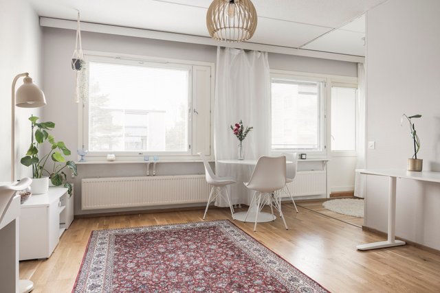 Niin hienolla keittiöllä varustettu tilava yksiö. 2/3 kerros, ei hissiä. Keittiössä keraaminen liesitaso, erillisuuni, astianpesukone, jääkaappipakastin ym. Hyvällä maulla remontoitu! Lattiat tammiparkettia! Tilava lasitettu parveke vehreälle sisäpihalle päin. Parvekkeen lattialla tummanharmaat terassilaatat. Niin tyylikäs lattia ja mukava jalan alla. Vuokralainen haluaa jatkaa asumista! Etsitään hänelle uutta vuokranantajaa! Vuokra 520 € + vesi + sähkö. Tai ostajalle omaan käyttöön! Hyvät bussiyhteydet! Bussipysäkki vieressä. Kaupat ym. palvelut lähellä.