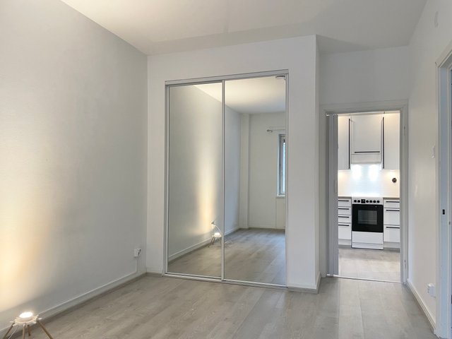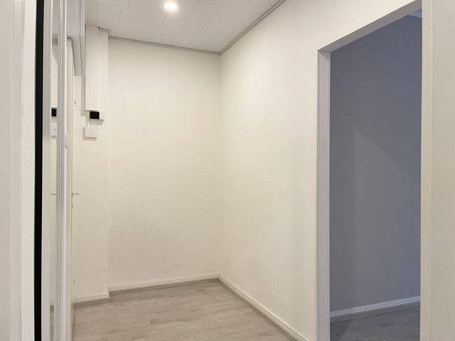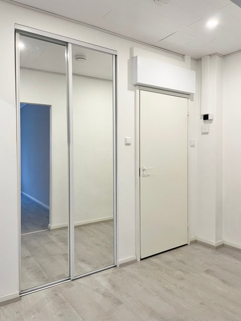 - Lattia vinyylilankkua, seinät maalattu. Liukuovikaapisto.