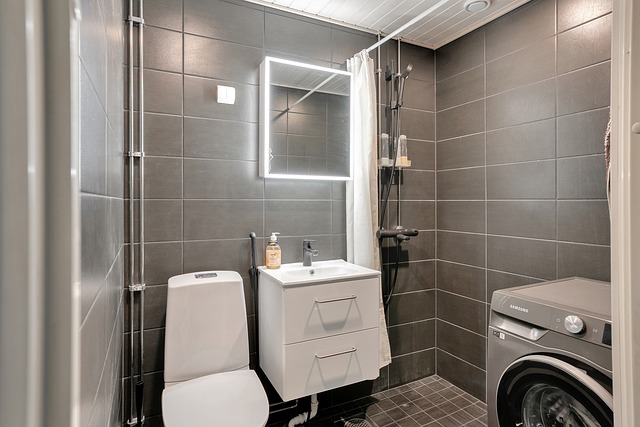 - Peilikaappi, suihku, wc-istuin, allaskaappi, ja pesukoneliitäntä