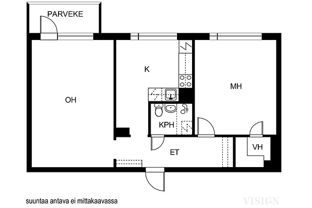 - Mainittu pinta-ala saattaa tämän ikäisessä kohteessa poiketa olennaisesti nykyisten standardien mukaan laskettavasta asuinpinta-alasta. Todellinen asuinpinta-ala voi olla yhtiöjärjestyksessä, isännöitsijäntodistuksessa ja esitteessä mainittua pienempi tai suurempi.