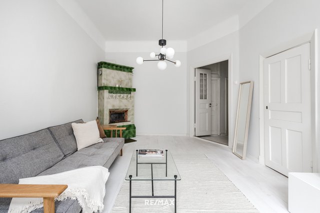 Asunnon korkeat huoneet, alkuperäiset ovet, lautalattiat ja isot ikkunat tuovat asuntoon ainutlaatuista alkuperäistä tunnelmaa. Olohuoneen katseenvangitsijana on kaunis kansallisromanttinen Koivu-kaakeliuuni, jonka on Turun kaakelitehtaalle suunnitellut arkkitehtitrio Nyström-Petrelius-Penttilä.
