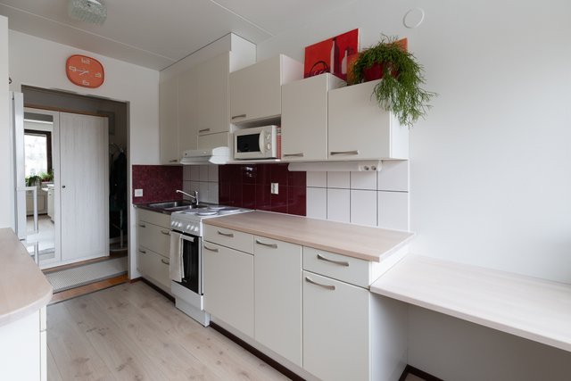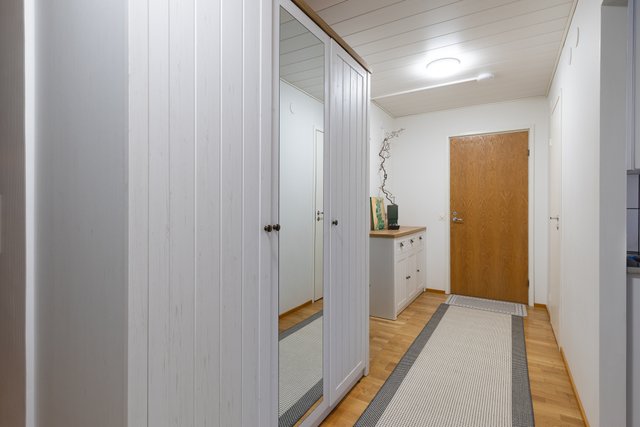 Asunnossa on juuri uusittu sauna, joka on vielä käyttämätön, kylpyhuone on remontoitu vuonna 2024 ja keittiö on uudistettu 2014. Käytännöllinen vaatehuone ja eteisen kaapistot tarjoavat runsaasti säilytystilaa.