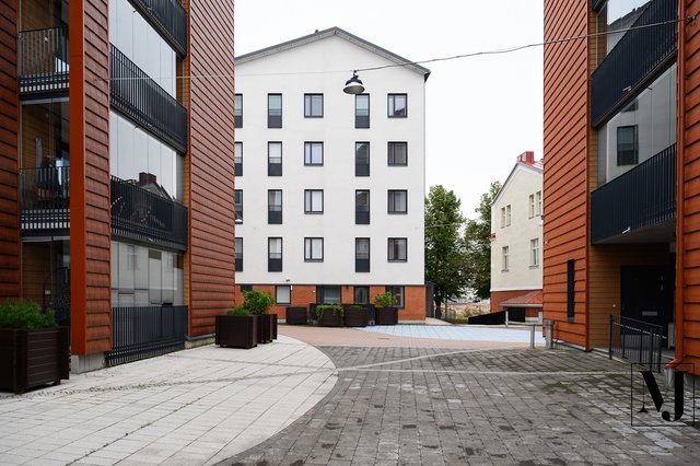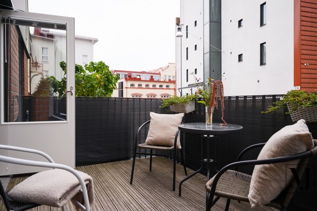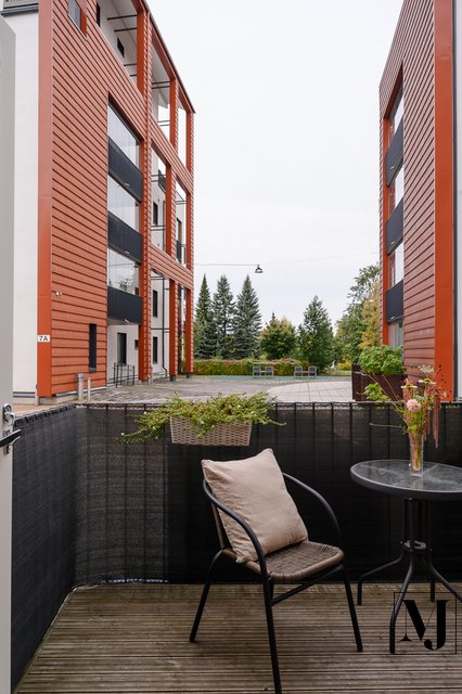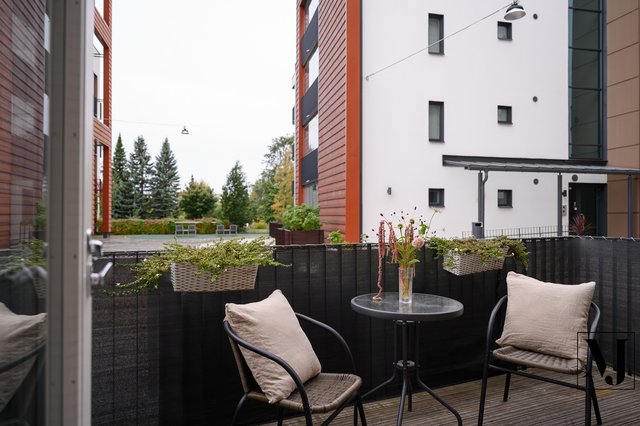 - Oma sisäänkäynti ja ikkunat avautuvat sisäpihan puolelle.