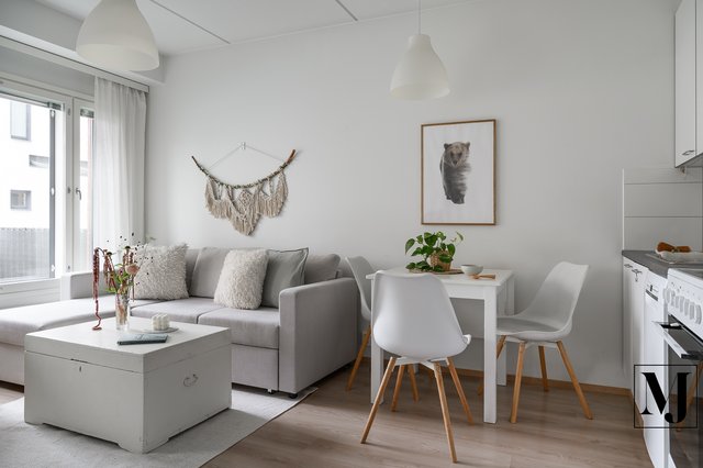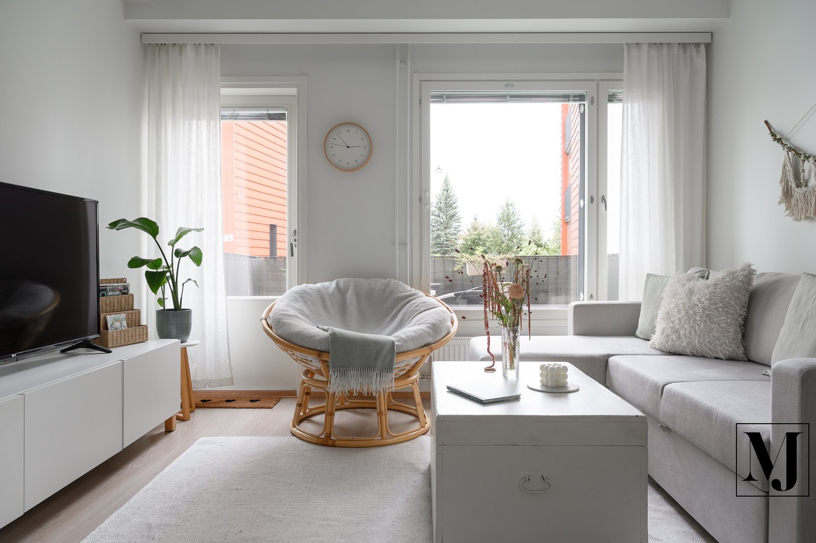 Tämä koti on valoisa ja helposti sisustettava, joten se taipuu monenlaisiin elämäntilanteisiin.