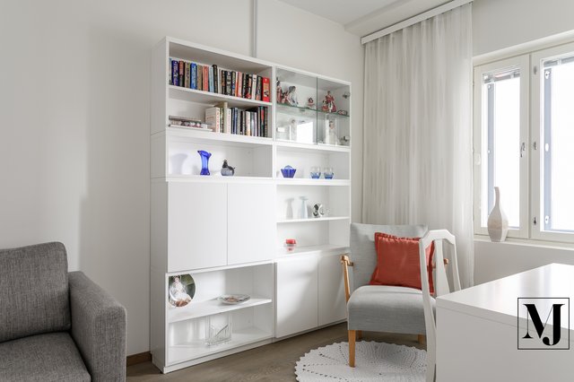 - Huoneistossa on kaksi hyvänkokoista makuuhuonetta. Toisen makuuhuoneen yhteydessä on vaatehuone, ja toisessa huoneessa on käytännöllistä kaappitilaa.