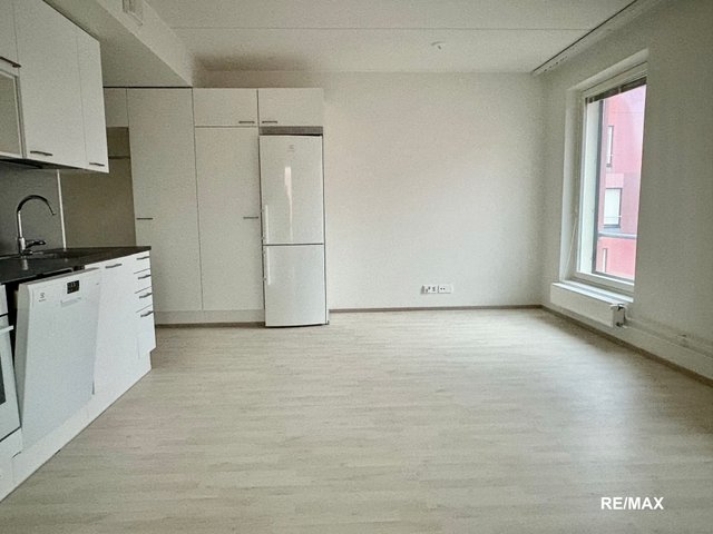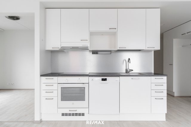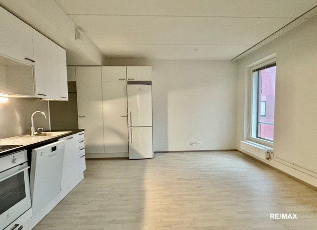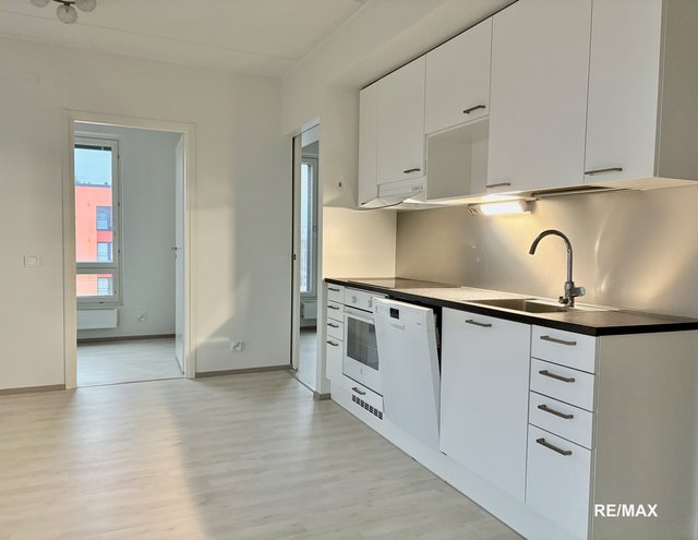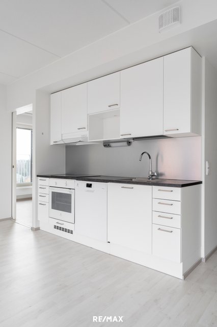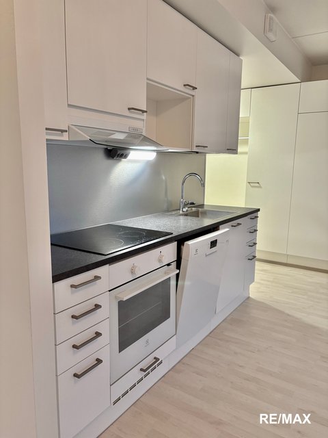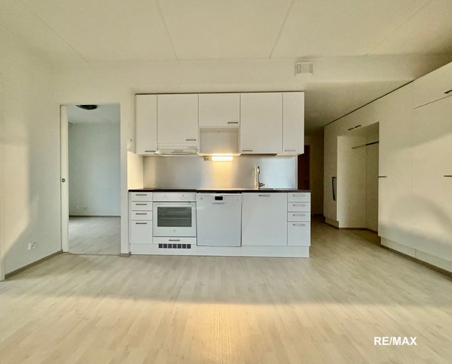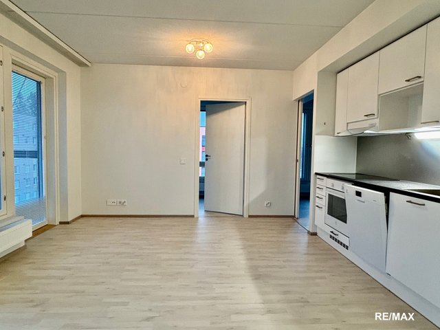 - Olohuone ja keittiö ovat yhtenäistä oleskelutilaa. Käynti lasitetulle parvekkeelle