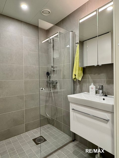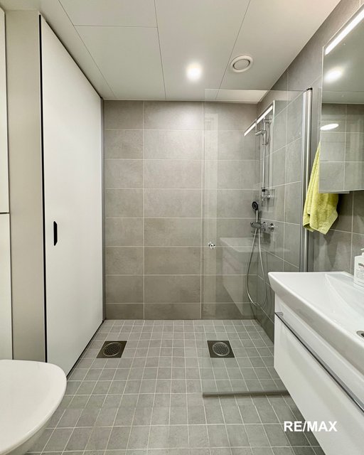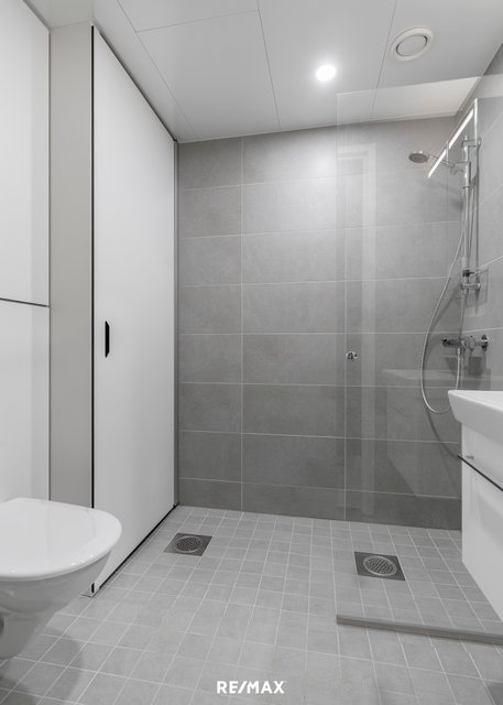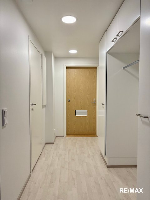 - WC-istuin, suihku, suihkuseinä, pesukoneliitäntä, lattialämmitys, peilikaappi, pesuallas, allaskaappi, ja ilmanvaihtokone lämmön talteenotolla sijaitsee pesukonesyvennyksessä oven takana