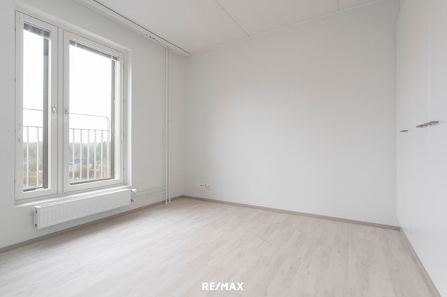 - Isommassa makuuhuoneessa ranskalainen parveke ja liukuovi olohuoneeseen. Molemmissa makuuhuoneissa seinän levyiset kaapistot.