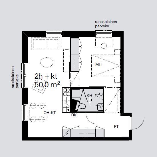 Uudehkossa asunnossa on huolella suunniteltu pohjaratkaisu. Laadukkaat materiaalit ja tyylikäs sisustus luovat viihtyisän ilmapiirin. Keittiö on varustettu kauniilla kaapistoilla ja nykyaikaisilla kodinkoneilla, mikä tekee ruoanlaitosta iloisen harrastuksen.
