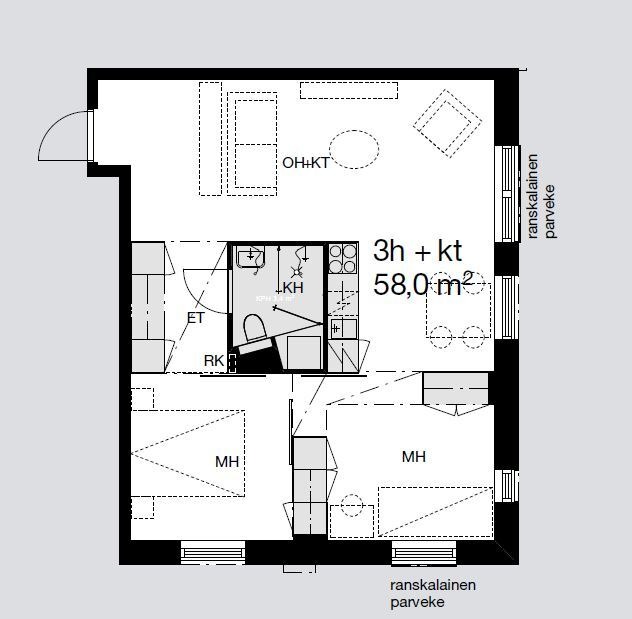 Tyylikkäät sisätilat yhdistyvät käytännöllisyyteen, ja avara pohjaratkaisu luo tilantuntua. Kodin sydämenä toimii moderni keittiö, joka on varusteltu laadukkailla kodinkoneilla. Olohuoneesta on käynti omalle parvekkeelle, missä voit nauttia rauhallisista aamuhetkistä tai auringonlaskusta.