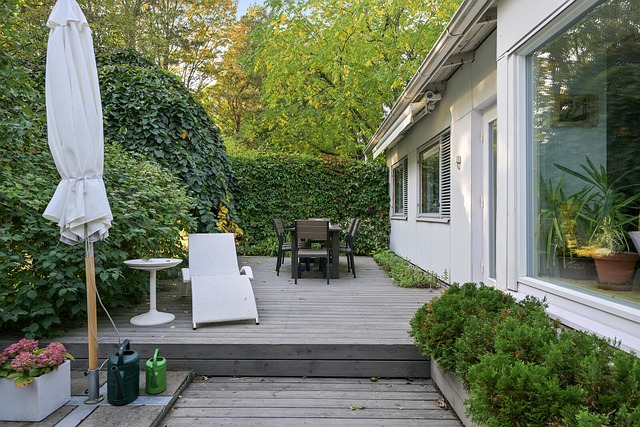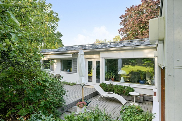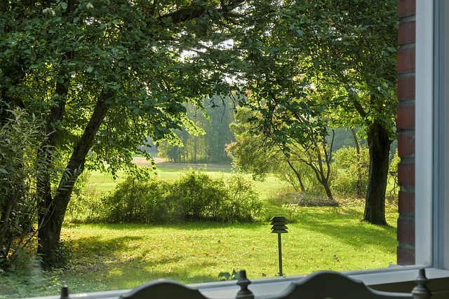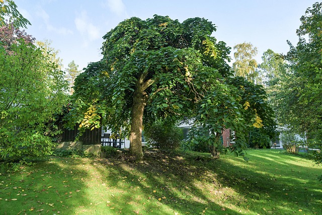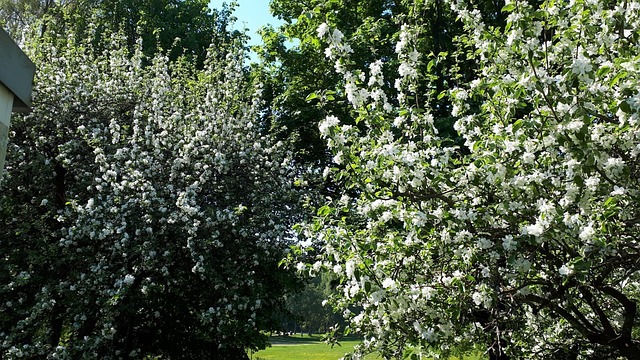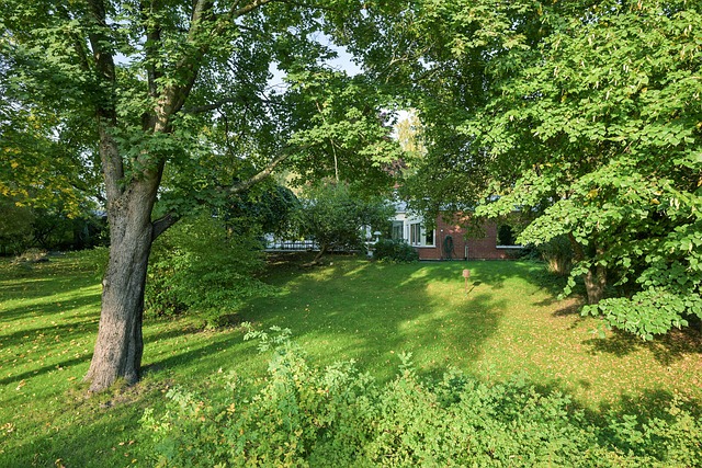 Isolla takapihalla on omenapuita, vaahterapuita,