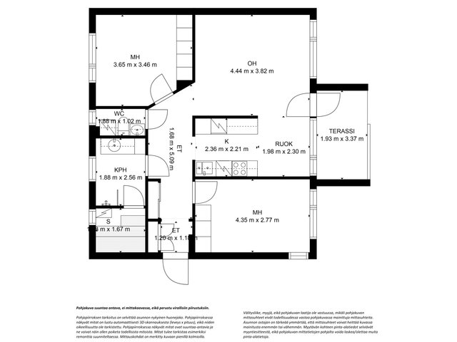 - Yhtiöjärjestyksen mukainen, Isännöitsijäntodistuksen mukainen, (Pinta-ala ei ole tarkistusmitattu ja todellinen pinta-ala voi olla suurempi tai pienempi, kuin ilmoitettu)