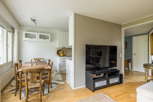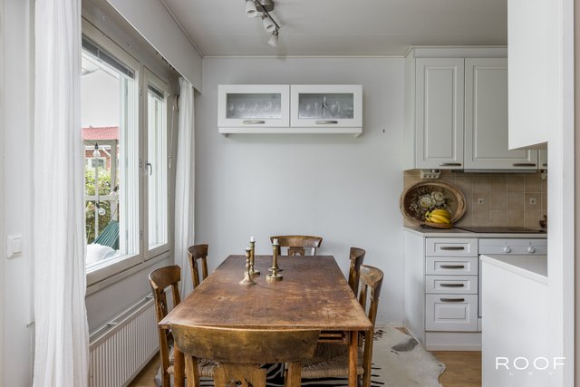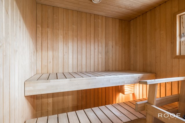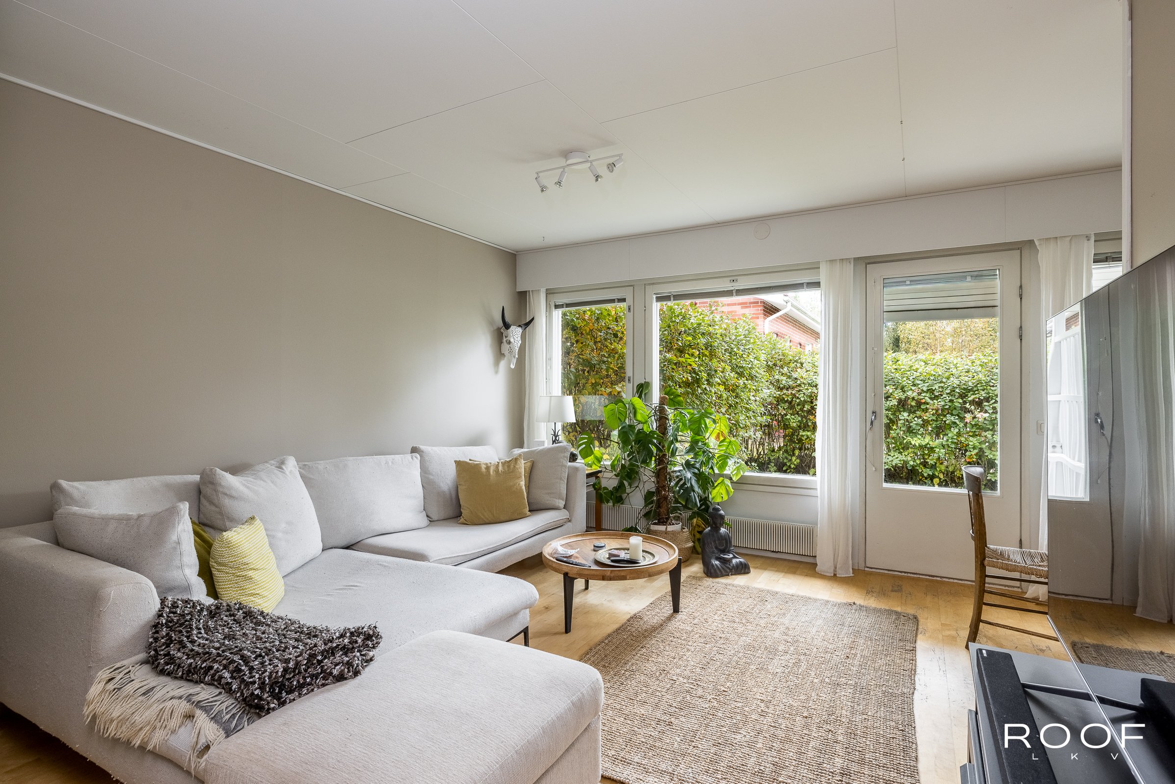 Tässä huoneistossa on todella toimiva pohjaratkaisu. Oleskelutilat ovat valoisat, näkymät omalle takapihalle. Pihan ilmansuunta on länsi, joten pääset löylyjen jälkeen nauttimaan ilta-auringosta. Asunnossa on kaksi tilavaa makuuhuonetta. Kylpyhuoneessa on iso allaskaappi ja peilikaappi sekä näiden lisäksi erillinen kaapisto, mukavana lisänä on myös sadesuihku. Kylpyhuone sekä sauna on uusittu 2017. Erillinen wc helpottaa arjessa.