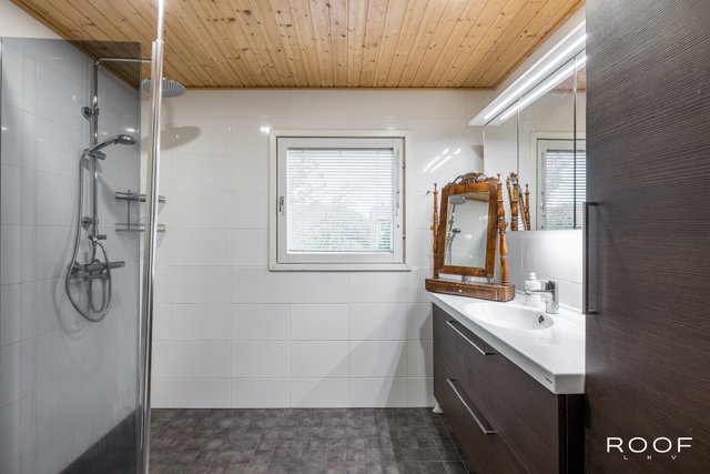 - Suihku, peilikaappi, allaskaappi, pesuallas, lattialämmitys, pyykkikaappi, suihkuseinä, ja bidee-suihku