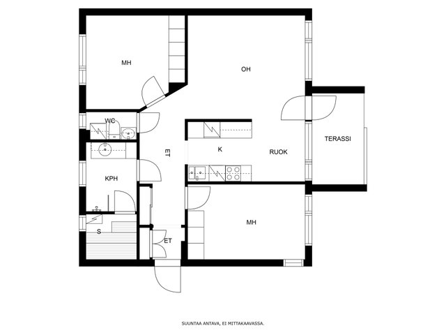 - Huoneiston pinta-ala on yhtiöjärjestyksen ja isännöitsijäntodistuksen mukaan 72 m². Pinta-alaa ei ole tarkistusmitattu. Edellä mainittu pinta-ala saattaa tämän ikäisessä kohteessa poiketa olennaisestikin huoneiston nykyisen ja rakentamisaikaisen mittaustapojen ja standardien mukaan laskettavasta pinta-alasta. Huoneiston todellinen pinta-ala voi siis olla yhtiöjärjestyksessä, isännöitsijäntodistuksessa ja esitteessä mainittua pienempi tai suurempi.