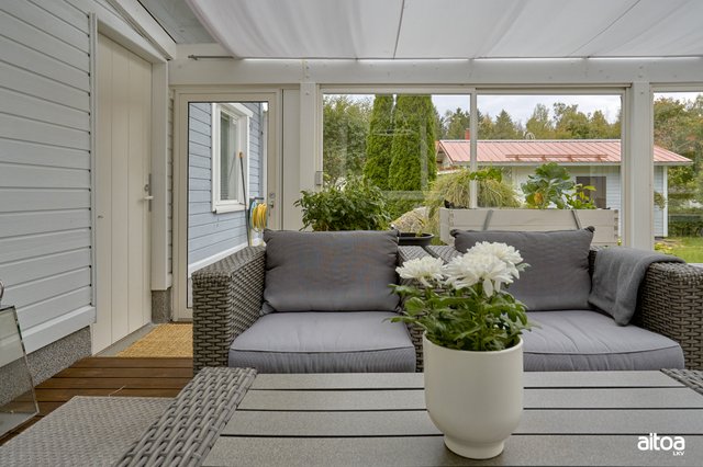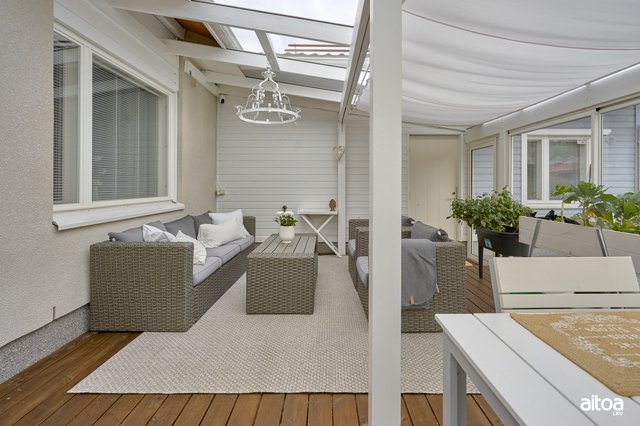 - Olohuoneesta käynti lasitetulle terassille.