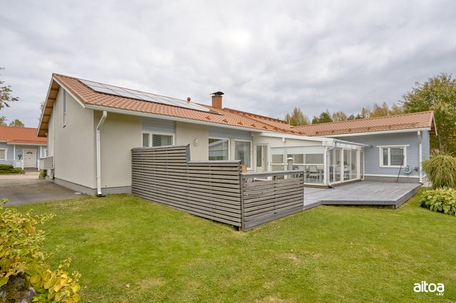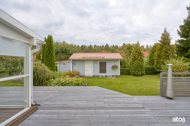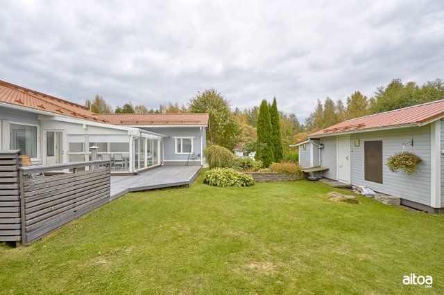Tilava ja valoisa, vuonna 2005 valmistunut 1-tasoinen omakotitalo sijaitsee halutulla Mussalon asuinalueella. Talossa on neljä makuuhuonetta, joista yksi, virallisesti työhuone (kooltaan 24 m² keittopisteellä ja wc:llä varustettuna), sijaitsee omassa siivessään, tarjoten yksityisyyttä esimerkiksi vieraille tai teinille. Olohuoneesta on käynti lasitetulle terassille, joka tuo lisätilaa ja mahdollisuuden nauttia ulkoilmasta ympäri vuoden.