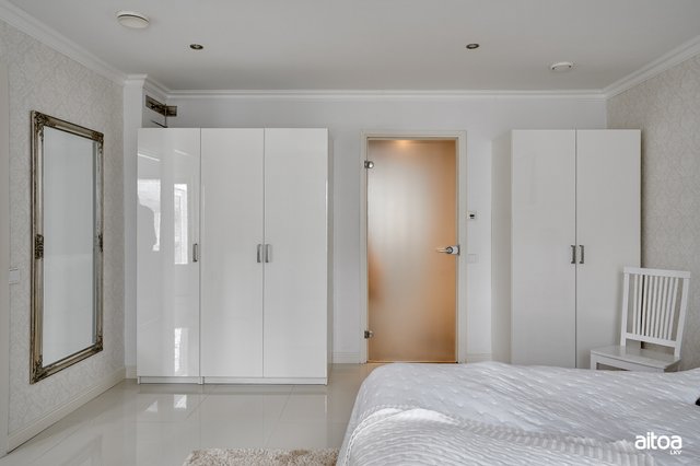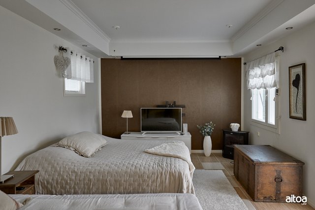 - 1 makuuhuoneista (virallisesti työhuone) sijaitsee rakennuksen siivessä, johon on oma sisäänkäynti lasitetun terassin kautta.