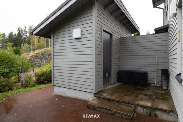 - Kylmä ulkovarasto ja vaatehuone yläkerrassa