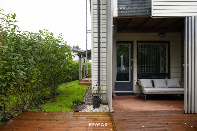 Laadukas ja valoisa kaksikerroksinen päätykoti Itä-Hakkilassa – viihtyisä terassi, tyylikäs sauna ja toimiva arki