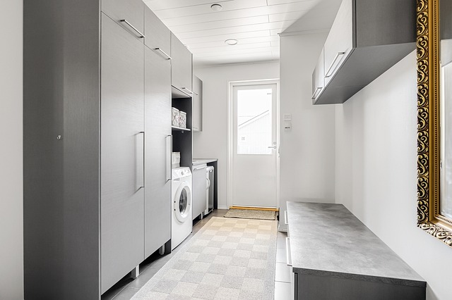 - Kurapiste, pesukoneliitäntä, pyykkikaapit, pesuallas, ja pöytätaso