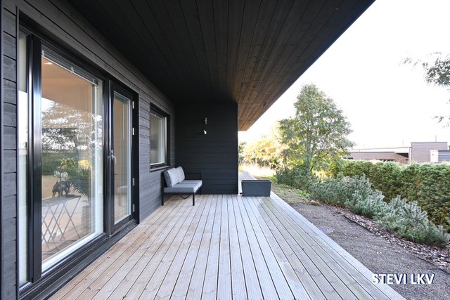 - Peililiukuovikaapistot lattiasta kattoon, isommasta makuuhuoneesta käynti terassille. Alakerran arkiolohuone muutettavissa makuuhuoneeksi, käynti terassille. Yläkerran ruokailutila muutettavissa makuuhuoneeksi.