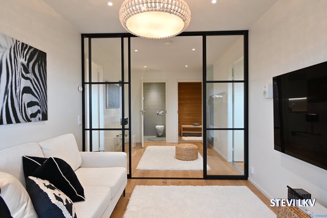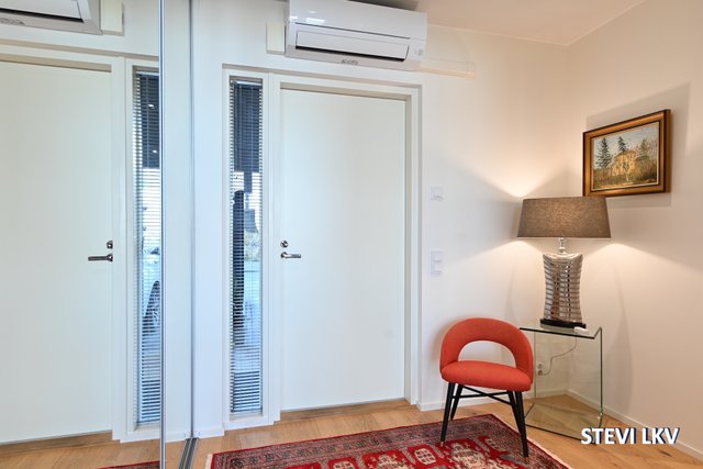 Asunnossa on myös oma sauna, kaksi wc:tä ja tilava kodinhoitohuone, jotka tekevät arjesta sujuvaa. Lämmitysjärjestelmänä toimii energiatehokas maalämpö ja ilmalämpöpumppu, mikä takaa miellyttävän sisäilman ympäri vuoden. Ilmalämpöpumppu toimii myös viilennykseen.