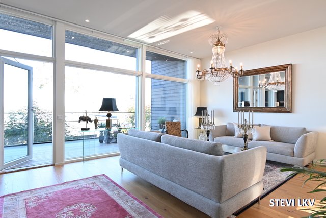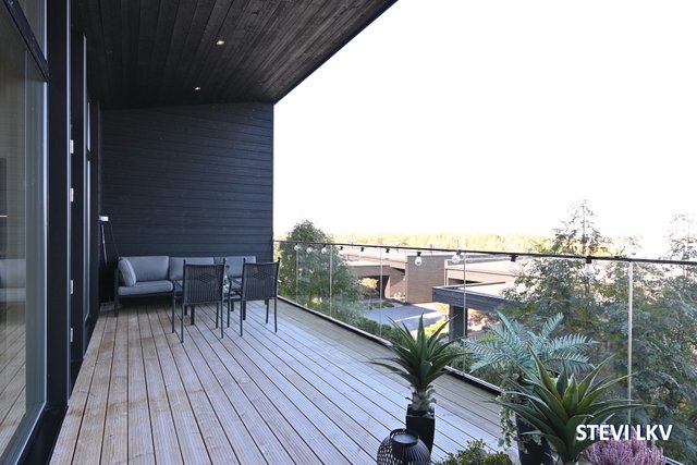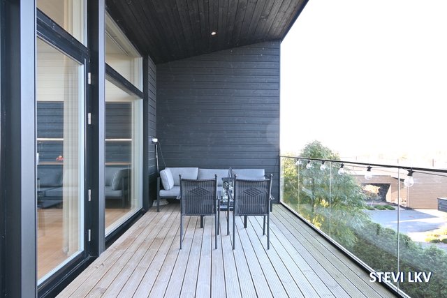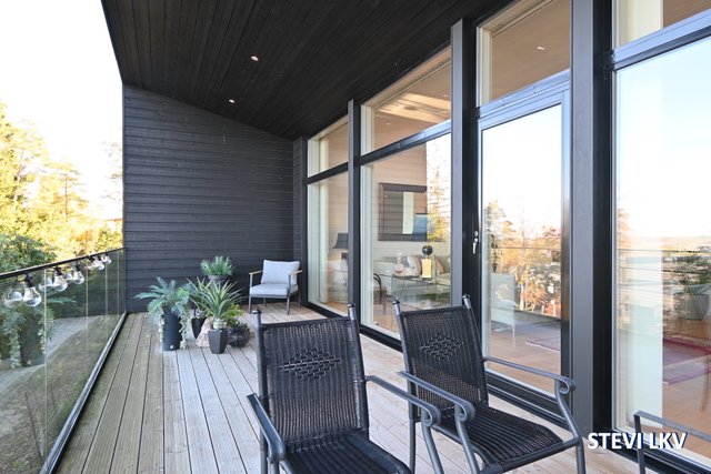 - Olohuoneesta käynti isolle parvekkeelle. Upea merimaisema.
