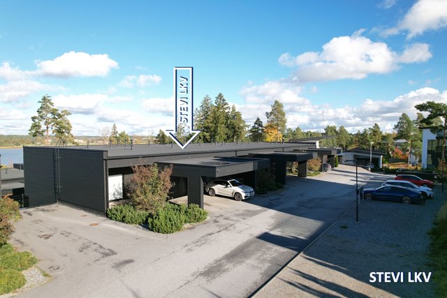Asuntoon kuuluu asunnon edessä oleva autokatospaikka sähköauton latausasemalla sekä sähkötolpallinen pihapaikka. Katoksen yhteydessä on lämmin varasto.