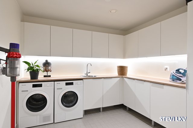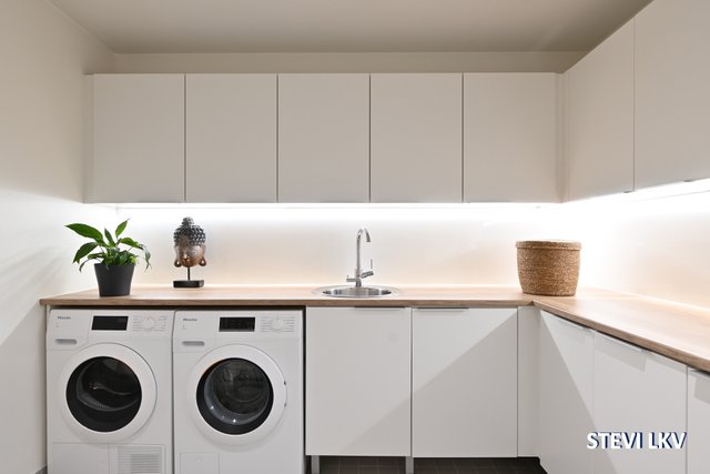 - Tilava ja toimiva kodinhoitotila arjen pyykkihuoltoon.