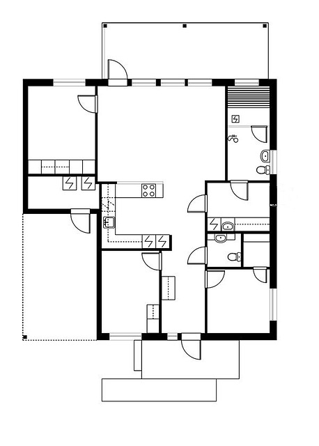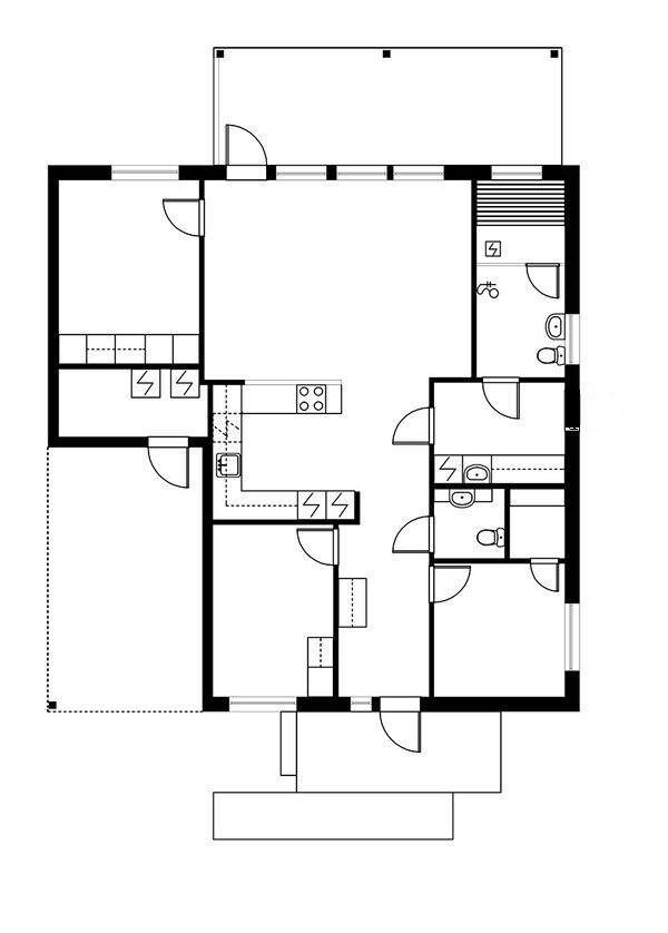 Erillisestä kodinhoitohuoneesta tulee kulku pesutiloihin.