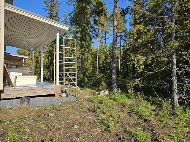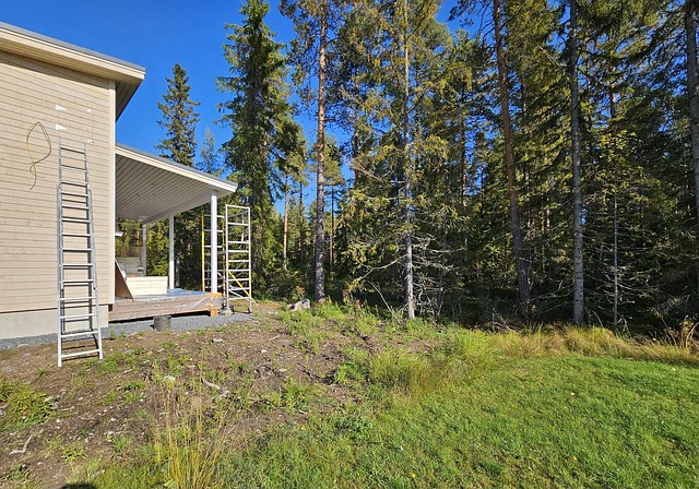 Iso takaterassi katetaan kauttaaltaan. Tontti rajoittuu metsään, joten takapihalla on aivan oma rauha.