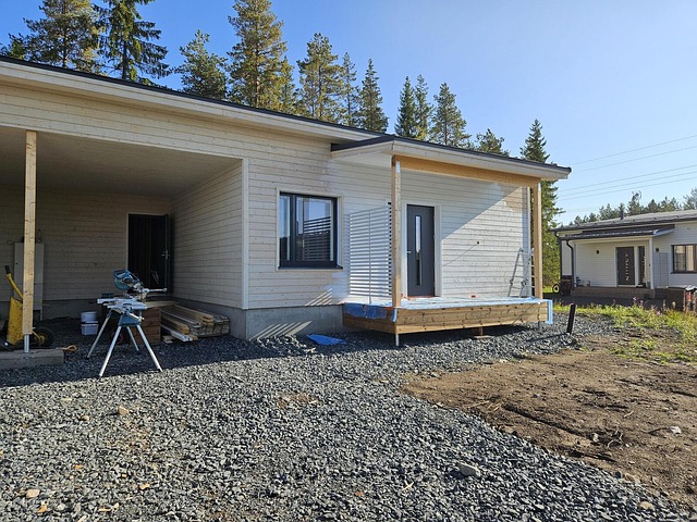 - Autokatos ja lämmin varasto asuntojen välissä.