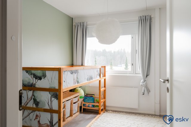 - Ilmalämpöpumppu, verhotangot, sälekaihtimet, eteisen peililiukuovikaappi, toisen makuuhuoneen vaatekaapit, eteisen kiinteät valaisimet.