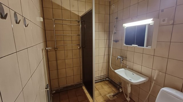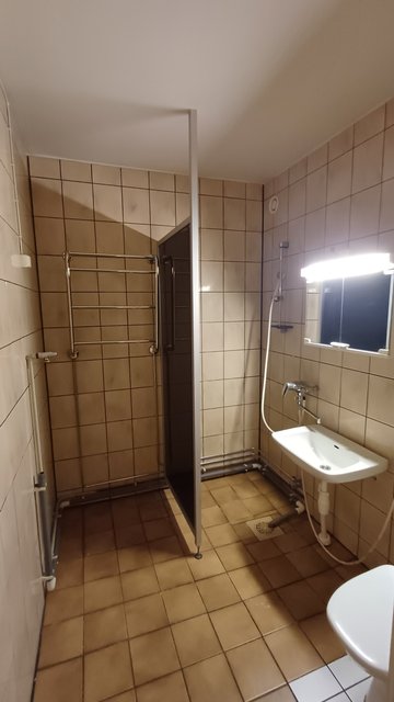 - Suihkuseinä, pesukoneliitäntä, wc-istuin, peilikaappi, suihku, ja kiinteät valaisimet