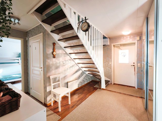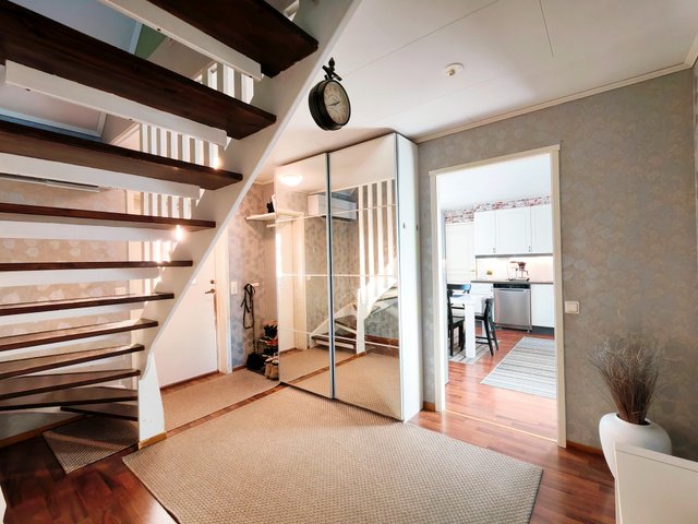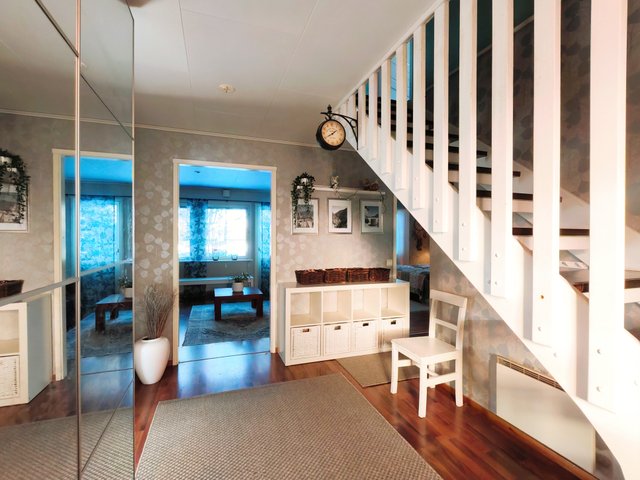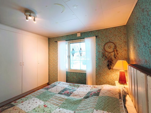 Neljän makkarin omakotitalo Tornion Hellälässä valmiina vastaanottamaan uuden perheen. Kaksi asuinkerrosta, avara olohuone sekä kodikas keittiö. Yläkerrassa mukava oleskelutila sekä hyvän kokoinen parveke länteen. Säilytystilaa on reilusti ja wc-istuimia talossa peräti kolme. Kodinhoitohuoneesta käynti viihtyisälle, katetulle terassille. Pihapiirissä on erillinen autokatos-varasto ja tontin nurkalla latovarasto.