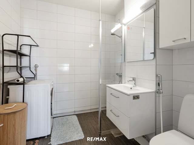 - WC-istuin, suihku, pesukoneliitäntä, peili, pesuallas, allaskaappi, ja bidee-suihku