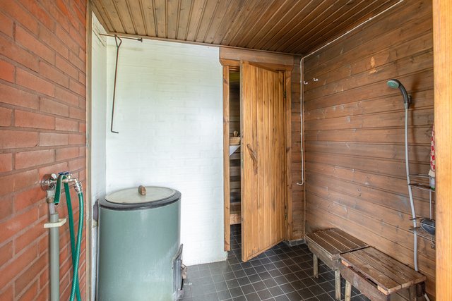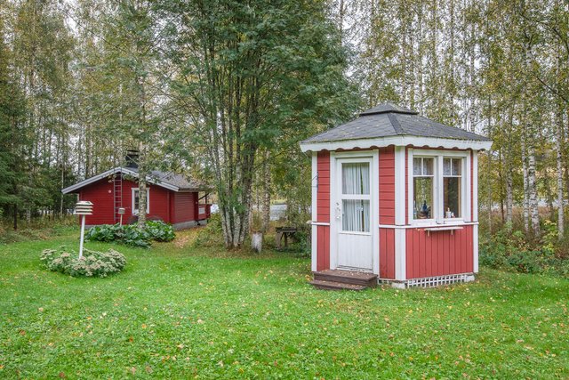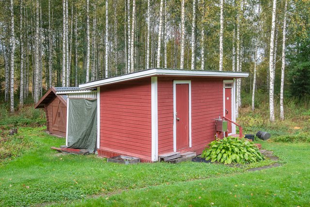 - Saunarakennus (rak. lupa 30.6.1998, lopputark. 20.9.1999) noin 31 m². Rakennus lamellihirsi, betonilaatta ja harjakatto, jossa huopakate. Saunatupa, jossa takka ja putkivalmius keittiölle. Pesuhuone, laattalattia, lattialämmitys ja vesipata. Saunassa puukiuas ja laattalattia. Vesi tulee kaivosta ja menee betoniseen sakokaivoon. Lattia laatoitettu ja saunaa päivitetty noin 10 v sitten. Vaja (rak.lupa 17.3.1988) 3,5m x 2 m, jossa Biolan kompostikäymälä ja varasto Talousrakennus, jossa aittahuone ja varasto Huvimaja, puuliiteri, kasvihuone