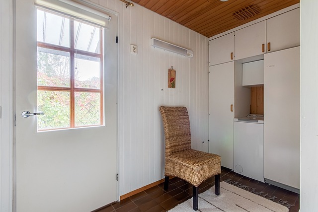 - pesukoneliitäntä, lämminvesivaraaja, kaapisto, käynti takapihalle, lattia laatta, seinät paneeli, sähkötoiminen lattialämmitys