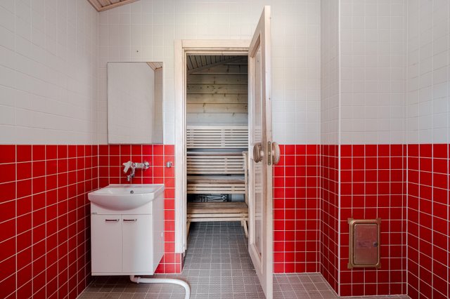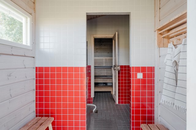 - Kohteessa sauna: Kyllä Varusteet: Sähkökiuas Seinämateriaalit: Puu Lattiamateriaalit: Laatta