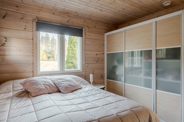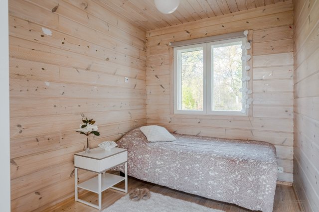 - Kaikissa makuuhuoneissa vaatekaapistot. Makuuhuoneista näkymät takapihan suuntaan. Päämakuuhuone sijaitsee erillään kolmesta pienemmästä makuuhuoneesta. Seinämateriaalit: Puu Lattiamateriaalit: Lauta Lukumäärä: 3