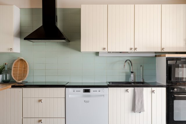 - Varusteet: Jääkaappipakastin, astianpesukone, mikroaaltouuni, liesi ja liesituuletin Seinämateriaalit: Puu Lattiamateriaalit: Laatta Liesi: Induktio Työtasot: Puu