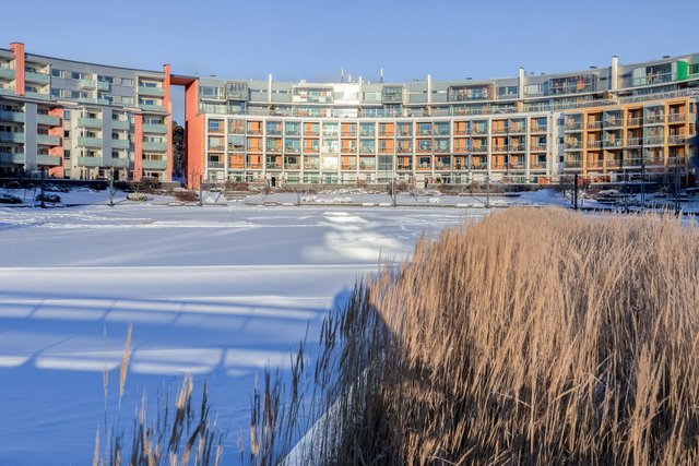 Huoneistosta avautuu huikeat näkymät kanavalle, ja sen suuret ikkunat takaavat runsaan luonnonvalon pääsyn sisälle. Olohuoneen avarasta ilmeestä pääsee nauttimaan joka päivä, ja lasitettu parveke etelään tarjoaa lisätilaa oleskeluun sekä mahdollisuuden nauttia auringonpaisteesta ympäri vuoden.