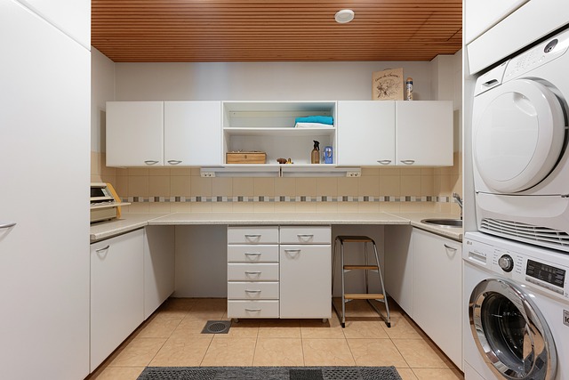 - Kuivauskaappi, pesukoneliitäntä, pöytätaso, pyykkikaapit, ja pesuallas