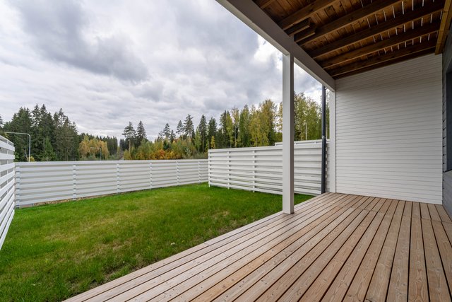 Asunnon mukavuuksiin kuuluu oma irtainvarasto, aidattu piha sekä valokuituyhteys. Autopaikka on saatavilla katoksesta erillisenä osakkeena hintaan 6000 €, ja siinä on varaus sähköauton latauspisteelle.