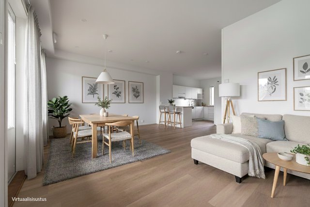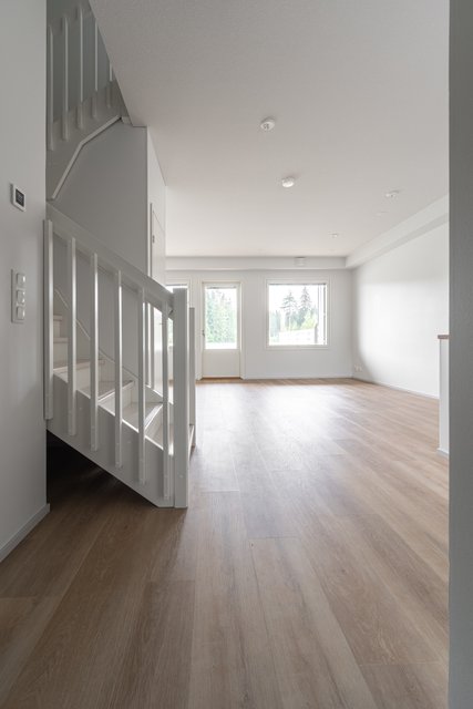Kahteen tasoon suunniteltu koti hurmaa avaruudellaan ja toimivalla pohjaratkaisullaan, jotka tekevät arjesta sujuvaa. Alakerrassa sijaitsevat moderni keittiö ja valoisa olohuone, kun taas yläkerrasta löytyvät kolme makuuhuonetta, sauna ja kylpytilat.