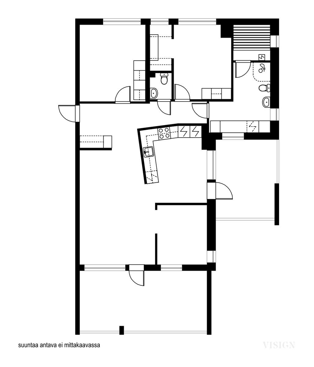 - Suihku, lattialämmitys, wc-istuin, peilikaappi, ja kiinteät valaisimet